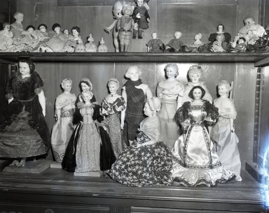At home of Dr. and Mrs. J.H. McGrannahan, 432 Haines Ave. Mrs. McGrannahan is a collector of things like dolls and doll furniture, buttons, and napkin rings. The family built a wing on the house to show the collections, and converted their barn to a rumpus room.